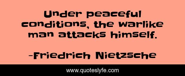 "Friedrich Nietzsche Quotes." Quoteslyfe.com, 2025. Mon. 08 Dec. 2025. <https://www.quoteslyfe.com/quote/Under-peaceful-conditions-the-warlike-man-attacks-172468>.