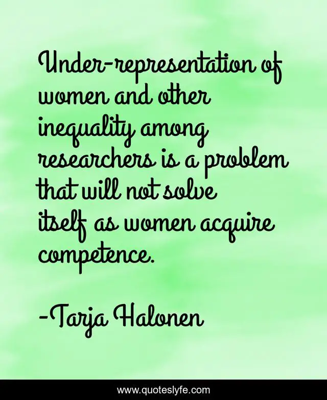 This page presents the quote "Under-representation of women and other inequality among researchers is a problem that will not solve itself as women acquire competence.". Author of this quote is Tarja Halonen. This quote is about problem, inequality,.