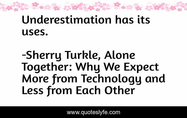 "Sherry Turkle, Alone Together: Why We Expect More from Technology and Less from Each Other Quotes." Quoteslyfe.com, 2025. Sat. 06 Dec. 2025. <https://www.quoteslyfe.com/quote/Underestimation-has-its-uses-179333>.