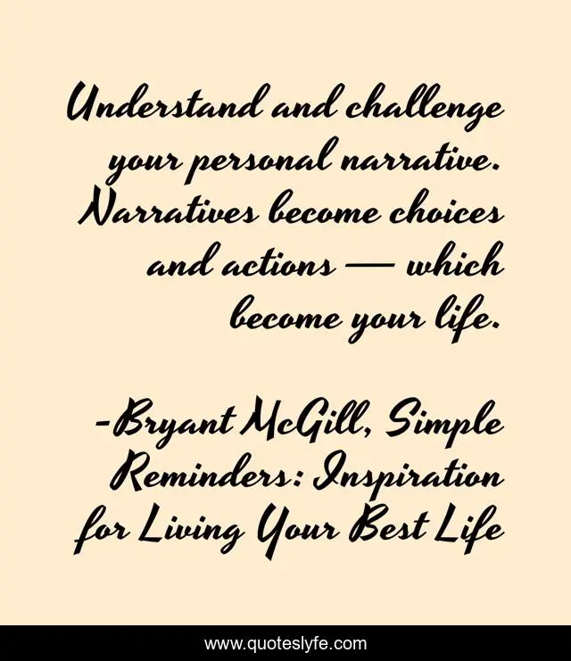 "Bryant McGill, Simple Reminders: Inspiration for Living Your Best Life Quotes." Quoteslyfe.com, 2025. Sat. 06 Dec. 2025. <https://www.quoteslyfe.com/quote/Understand-and-challenge-your-personal-narrative-Narratives-156885>.