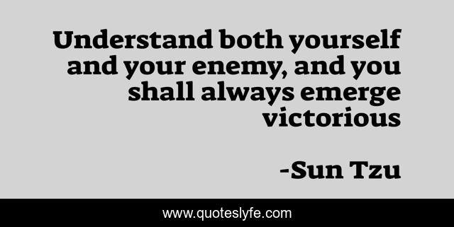 This page presents the quote "Understand both yourself and your enemy, and you shall always emerge victorious". Author of this quote is Sun Tzu. .