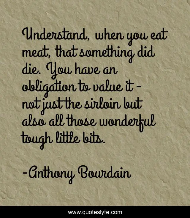 "Anthony Bourdain Quotes." Quoteslyfe.com, 2025. Fri. 05 Dec. 2025. <https://www.quoteslyfe.com/quote/Understand-when-you-eat-meat-that-something-301053>.