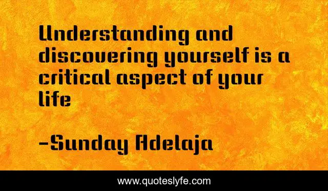 This page presents the quote "Understanding and discovering yourself is a critical aspect of your life". Author of this quote is Sunday Adelaja. This quote is about life, blessing, finance, money, work, understanding, job, purpose, self-discovery,.