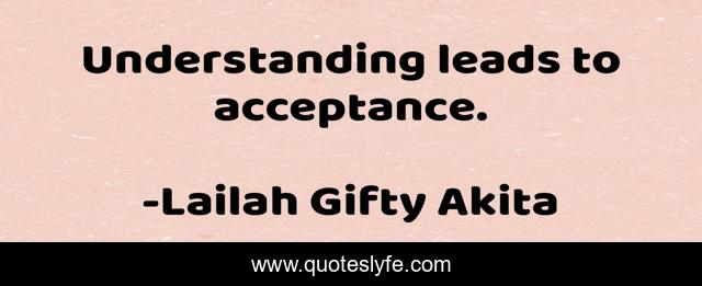 This page presents the quote "Understanding leads to acceptance.". Author of this quote is Lailah Gifty Akita. This quote is about peace, acceptance, understanding, advice-love, positive-thoughts, humanity,.