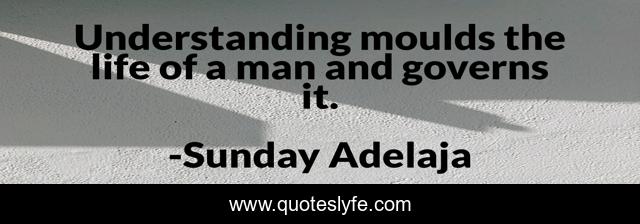 This page presents the quote "Understanding moulds the life of a man and governs it.". Author of this quote is Sunday Adelaja. This quote is about moulds, governs, understanding,.