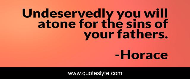 This page presents the quote "Undeservedly you will atone for the sins of your fathers.". Author of this quote is Horace. .