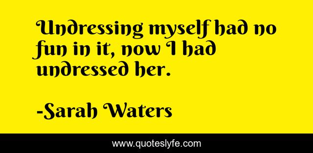 This page presents the quote "Undressing myself had no fun in it, now I had undressed her.". Author of this quote is Sarah Waters. This quote is about lust, undressing,.