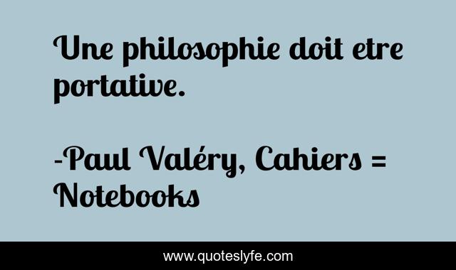"Paul Valéry, Cahiers = Notebooks Quotes." Quoteslyfe.com, 2025. Fri. 05 Dec. 2025. <https://www.quoteslyfe.com/quote/Une-philosophie-doit-etre-portative-8533>.