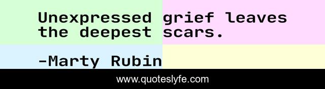 This page presents the quote "Unexpressed grief leaves the deepest scars.". Author of this quote is Marty Rubin. This quote is about grief, repression, the-unexpressed,.