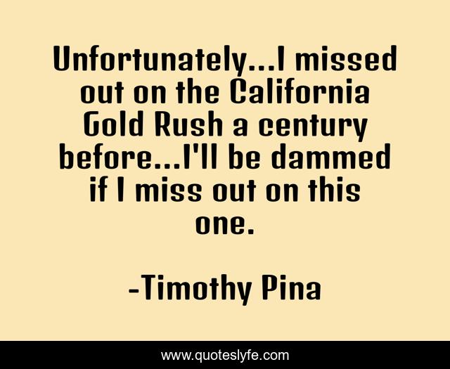 This page presents the quote "Unfortunately...I missed out on the California Gold Rush a century before...I'll be dammed if I miss out on this one.". Author of this quote is Timothy Pina. This quote is about humorous, may-21-2011,.