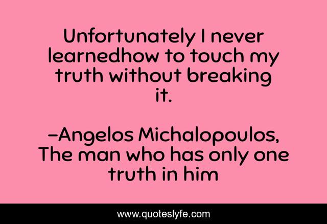 This page presents the quote "Unfortunately I never learnedhow to touch my truth without breaking it.". Author of this quote is Angelos Michalopoulos, The man who has only one truth in him. This quote is about romance, self-motivation, self-improvement,.