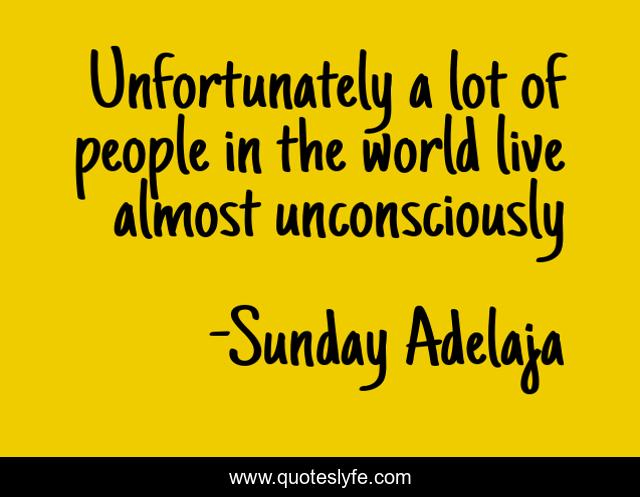 This page presents the quote "Unfortunately a lot of people in the world live almost unconsciously". Author of this quote is Sunday Adelaja. This quote is about world, life, unconscious, people,.