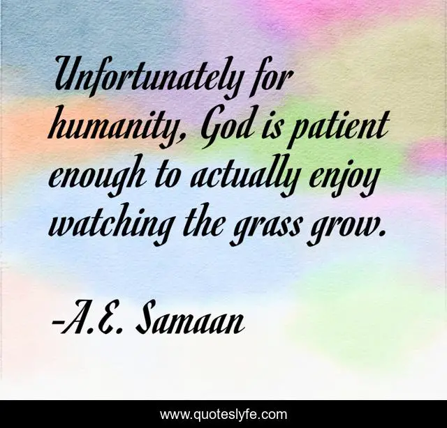 This page presents the quote "Unfortunately for humanity, God is patient enough to actually enjoy watching the grass grow.". Author of this quote is A.E. Samaan. This quote is about eternity, god, infinity, infinite, eternal,.