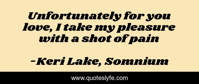 This page presents the quote "Unfortunately for you love, I take my pleasure with a shot of pain". Author of this quote is Keri Lake, Somnium. This quote is about demons, drew, halos, angels, paranormal-romance, somnium,.