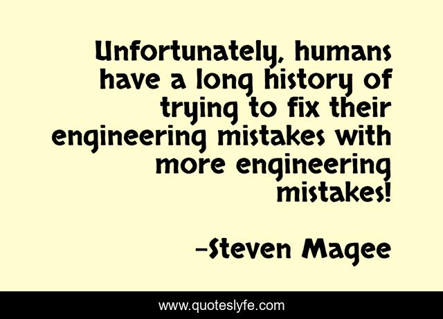 This page presents the quote "Unfortunately, humans have a long history of trying to fix their engineering mistakes with more engineering mistakes!". Author of this quote is Steven Magee. This quote is about unfortunately, fix, humans, long, engineering, mistakes, history, trying, more,.