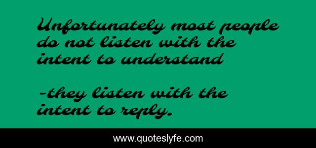 This page presents the quote "Unfortunately most people do not listen with the intent to understand". Author of this quote is they listen with the intent to reply.. .