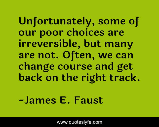 This page presents the quote "Unfortunately, some of our poor choices are irreversible, but many are not. Often, we can change course and get back on the right track.". Author of this quote is James E. Faust. This quote is about poor, right, choices,.