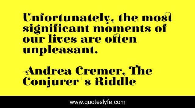 This page presents the quote "Unfortunately, the most significant moments of our lives are often unpleasant.". Author of this quote is Andrea Cremer, The Conjurer's Riddle. This quote is about life, death, moments, sadness, important, lives, depression,.
