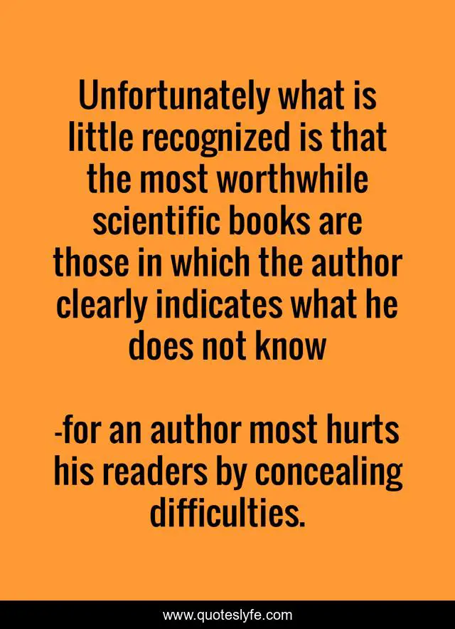 This page presents the quote "Unfortunately what is little recognized is that the most worthwhile scientific books are those in which the author clearly indicates what he does not know". Author of this quote is for an author most hurts his readers by concealing difficulties.. .