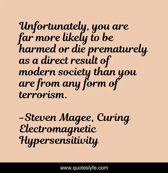 "Steven Magee, Curing Electromagnetic Hypersensitivity Quotes." Quoteslyfe.com, 2025. Mon. 08 Dec. 2025. <https://www.quoteslyfe.com/quote/Unfortunately-you-are-far-more-likely-to-102694>.