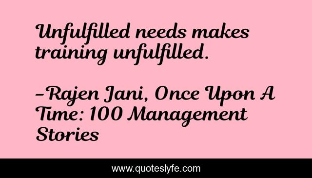 "Rajen Jani, Once Upon A Time: 100 Management Stories Quotes." Quoteslyfe.com, 2025. Sun. 07 Dec. 2025. <https://www.quoteslyfe.com/quote/Unfulfilled-needs-makes-training-unfulfilled-31306>.