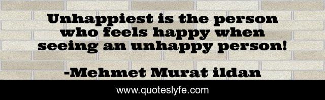 This page presents the quote "Unhappiest is the person who feels happy when seeing an unhappy person!". Author of this quote is Mehmet Murat ildan. This quote is about turkish-aphorisms, unhappy-life, mehmet-murat-ildan, ildan-wise-sayings, turkish, ildan-wisdom, turkish-sayings, turkish-playwrights, unhappy,.