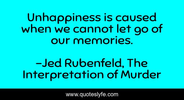 This page presents the quote "Unhappiness is caused when we cannot let go of our memories.". Author of this quote is Jed Rubenfeld, The Interpretation of Murder. This quote is about memories, happiness,.