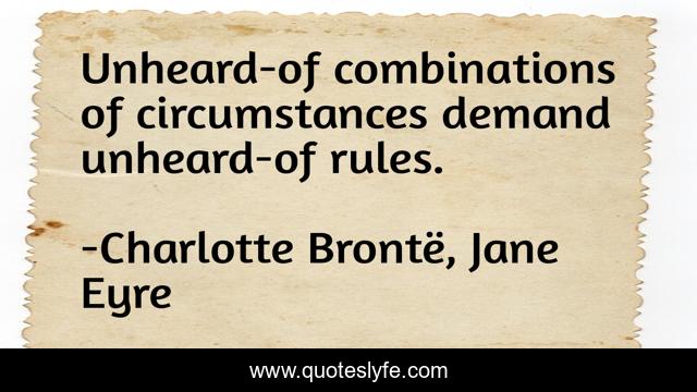 "Charlotte Brontë, Jane Eyre Quotes." Quoteslyfe.com, 2025. Sat. 06 Dec. 2025. <https://www.quoteslyfe.com/quote/Unheard-of-combinations-of-circumstances-demand-unheard-254283>.