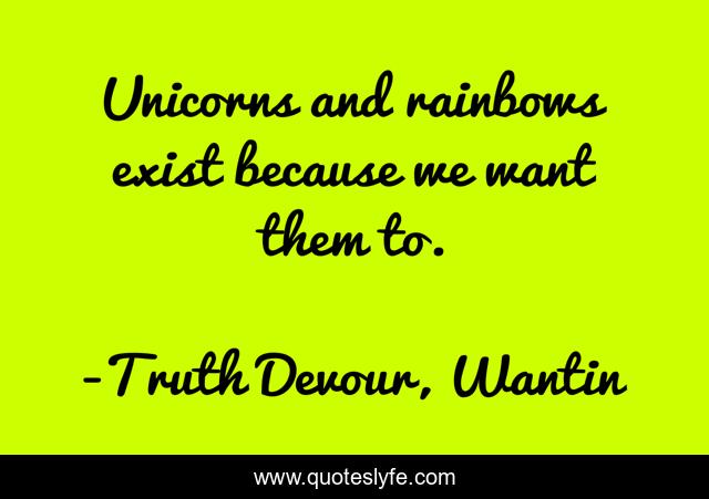 "Truth Devour, Wantin Quotes." Quoteslyfe.com, 2025. Fri. 05 Dec. 2025. <https://www.quoteslyfe.com/quote/Unicorns-and-rainbows-exist-because-we-want-126385>.