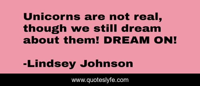 This page presents the quote "Unicorns are not real, though we still dream about them! DREAM ON!". Author of this quote is Lindsey Johnson. This quote is about fun, random, humor,.