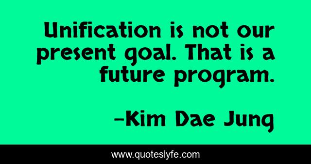This page presents the quote "Unification is not our present goal. That is a future program.". Author of this quote is Kim Dae Jung. This quote is about program, goal, present,.