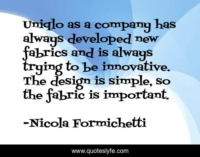 This page presents the quote "Uniqlo as a company has always developed new fabrics and is always trying to be innovative. The design is simple, so the fabric is important.". Author of this quote is Nicola Formichetti. This quote is about simple, company, trying,.