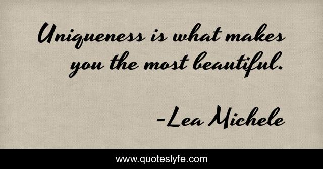 This page presents the quote "Uniqueness is what makes you the most beautiful.". Author of this quote is Lea Michele. This quote is about beautiful, unique, love, affection, inspiration,.