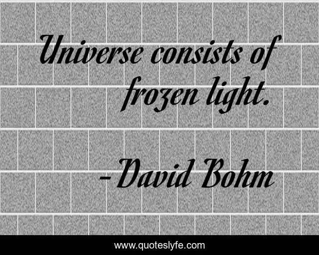 "David Bohm Quotes." Quoteslyfe.com, 2025. Mon. 08 Dec. 2025. <https://www.quoteslyfe.com/quote/Universe-consists-of-frozen-light-42089>.