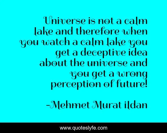 "Mehmet Murat ildan Quotes." Quoteslyfe.com, 2025. Fri. 05 Dec. 2025. <https://www.quoteslyfe.com/quote/Universe-is-not-a-calm-lake-and-110346>.