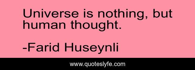 This page presents the quote "Universe is nothing, but human thought.". Author of this quote is Farid Huseynli. This quote is about nothing, thought, thoughts, universe-human,.
