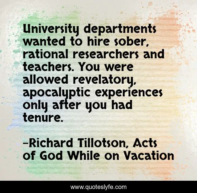 "Richard Tillotson, Acts of God While on Vacation Quotes." Quoteslyfe.com, 2025. Sat. 06 Dec. 2025. <https://www.quoteslyfe.com/quote/University-departments-wanted-to-hire-sober-rational-184022>.