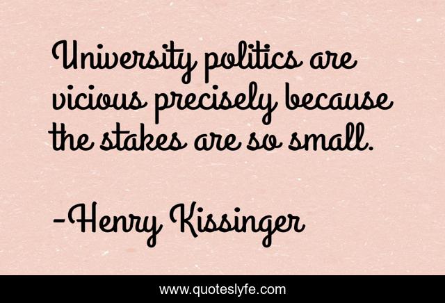 This page presents the quote "University politics are vicious precisely because the stakes are so small.". Author of this quote is Henry Kissinger. This quote is about small, university, stakes,.