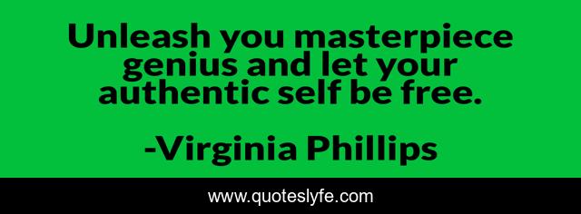 This page presents the quote "Unleash you masterpiece genius and let your authentic self be free.". Author of this quote is Virginia Phillips. This quote is about enthusiasm, empowerment, motivation, inspirational,.