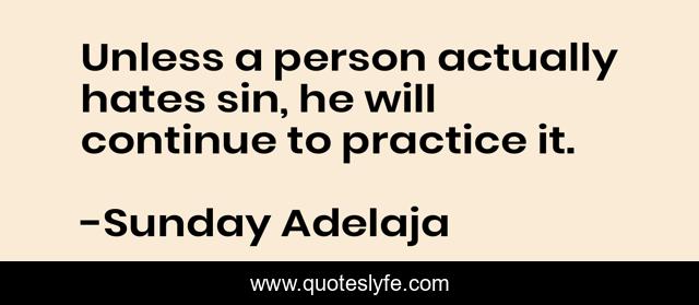 This page presents the quote "Unless a person actually hates sin, he will continue to practice it.". Author of this quote is Sunday Adelaja. .