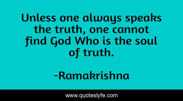 This page presents the quote "Unless one always speaks the truth, one cannot find God Who is the soul of truth.". Author of this quote is Ramakrishna. This quote is about god, soul, find,.