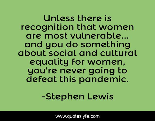 This page presents the quote "Unless there is recognition that women are most vulnerable... and you do something about social and cultural equality for women, you're never going to defeat this pandemic.". Author of this quote is Stephen Lewis. This quote is about women, defeat,.
