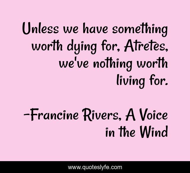 "Francine Rivers, A Voice in the Wind Quotes." Quoteslyfe.com, 2025. Fri. 05 Dec. 2025. <https://www.quoteslyfe.com/quote/Unless-we-have-something-worth-dying-for-5285>.