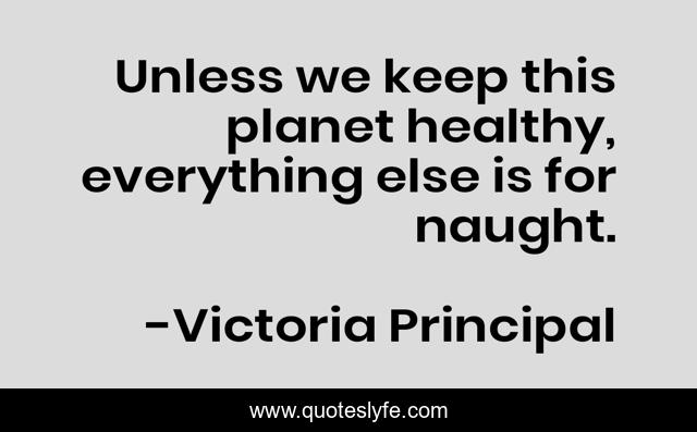 This page presents the quote "Unless we keep this planet healthy, everything else is for naught.". Author of this quote is Victoria Principal. This quote is about healthy, everything, planet,.