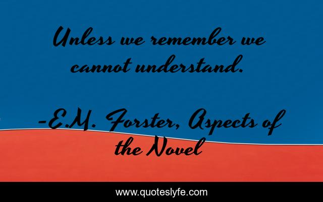 This page presents the quote "Unless we remember we cannot understand.". Author of this quote is E.M. Forster, Aspects of the Novel. This quote is about memory, understanding, writing,.