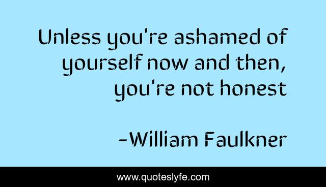This page presents the quote "Unless you're ashamed of yourself now and then, you're not honest". Author of this quote is William Faulkner. This quote is about honesty, ashamed, yourself,.