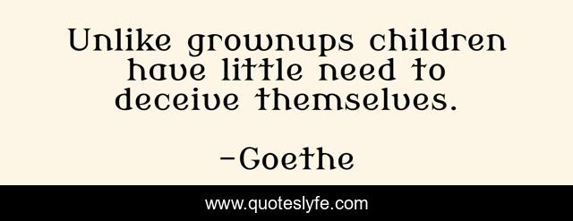 This page presents the quote "Unlike grownups children have little need to deceive themselves.". Author of this quote is Goethe. This quote is about children, childhood,.