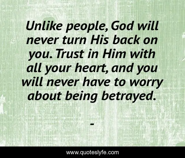 Unlike people, God will never turn His back on you. Trust in Him with all your heart, and you will never have to worry about being betrayed.