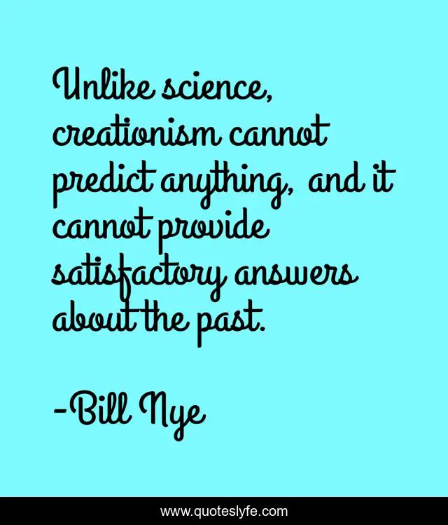 "Bill Nye Quotes." Quoteslyfe.com, 2025. Fri. 05 Dec. 2025. <https://www.quoteslyfe.com/quote/Unlike-science-creationism-cannot-predict-anything-and-292790>.