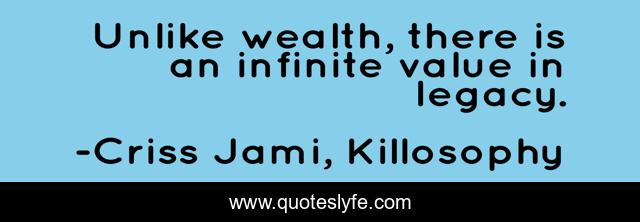 "Criss Jami, Killosophy Quotes." Quoteslyfe.com, 2025. Fri. 05 Dec. 2025. <https://www.quoteslyfe.com/quote/Unlike-wealth-there-is-an-infinite-value-46071>.